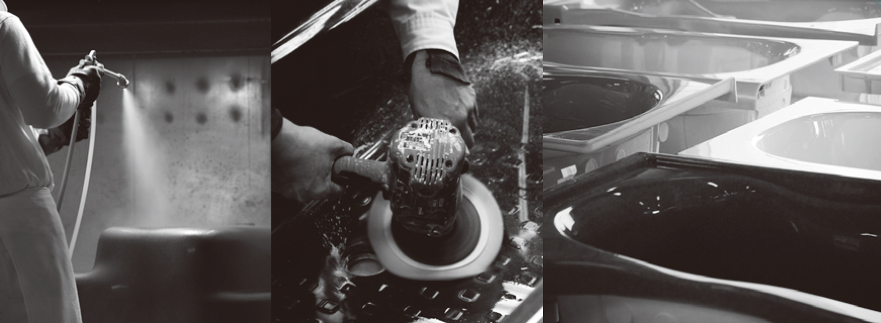 しっかり時間をかけてじっくりと固めていく「注型製法」。時間をかけて丁寧につくることで、十分な厚みと質感を備えたエクランバスができあがります。