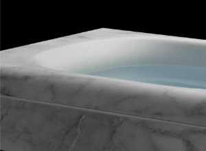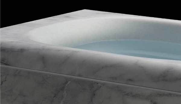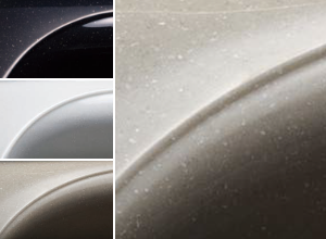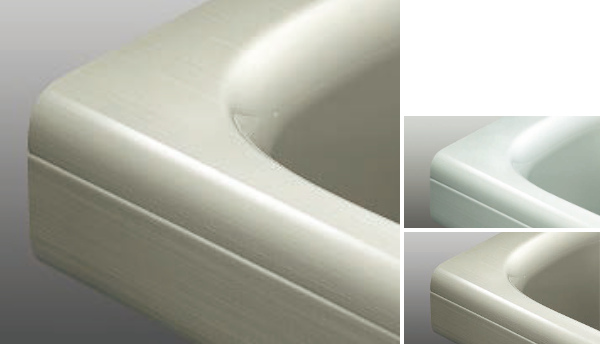 体をあずけた時の心地よさを生む「タフぴかコート(ゲルコート)」を重ねて成形した、厚み約9㎜の人造大理石。しっとりと滑らかな肌ざわり、透明感、奥行きのある深みと美しさを実現しました。