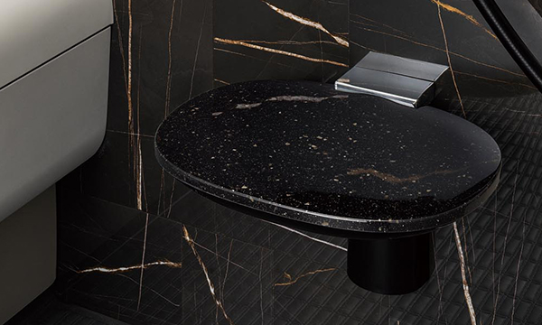 トクラス独自の人造大理石素材「エクラン」は深みのある宝石のような輝きとしっとりとした肌触りで、入浴の心地よさが続きます。