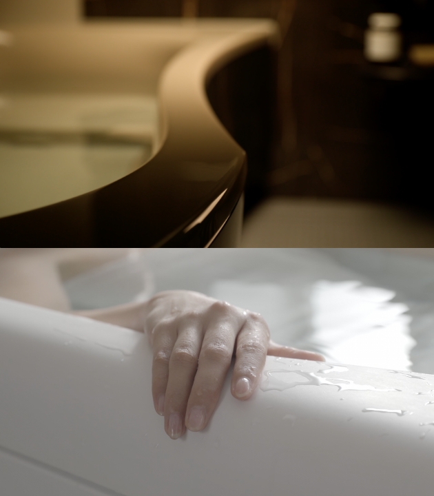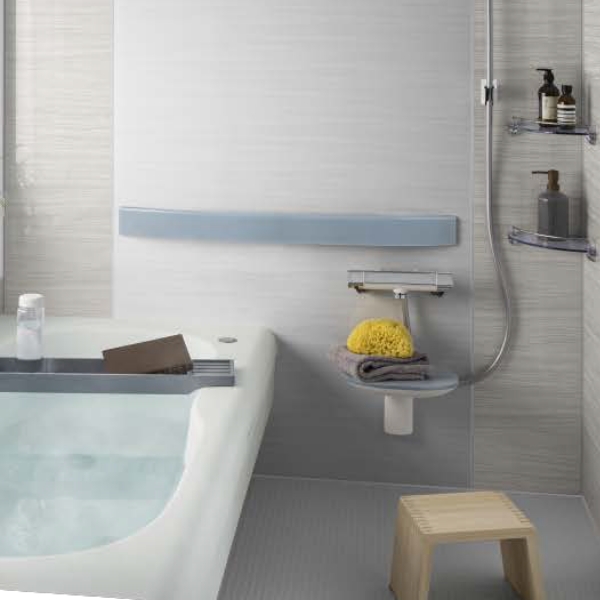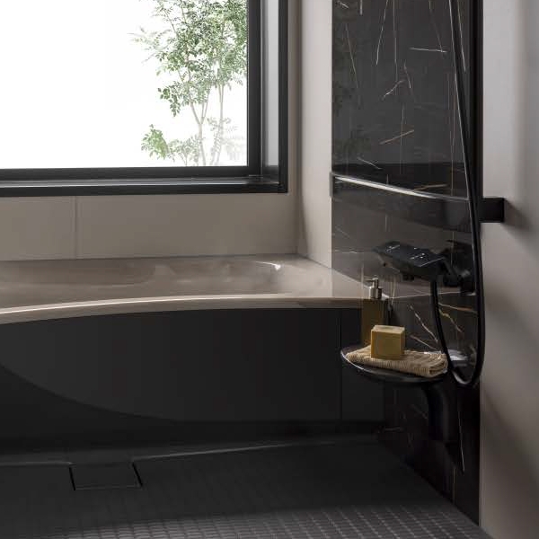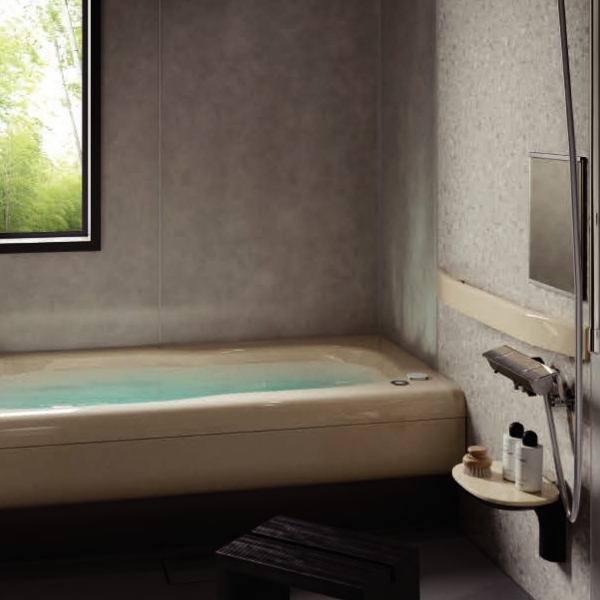 ニュートラルな自分に戻る、トクラスバスルームアクシィ。浴槽は肌に触れるものだから、触れ心地にはこだわりたい。トクラス独自の人造大理石素材「エクラン」は深みのある宝石のような輝きとしっとりとした肌触りで、入浴の心地よさが続きます。