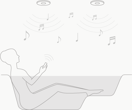 音が反響しやすいなどの浴室特有の環境でも低音をしっかり響かせます。Bluetooth®対応の機器とワイヤレスで繋いでお気に入りの曲も、高音質でお楽しみいただけます。
