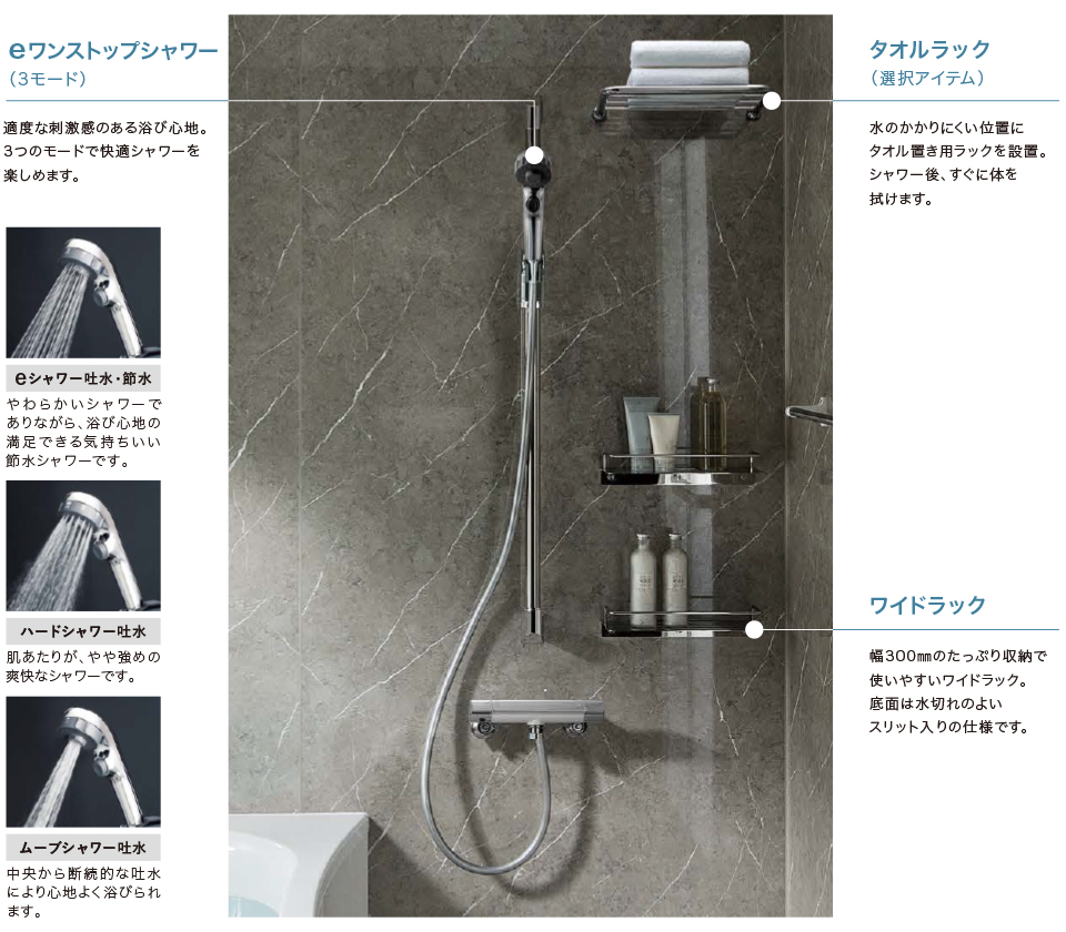 シャワー入浴を快適に楽しみたい方にぴったりのシャワータイプ。