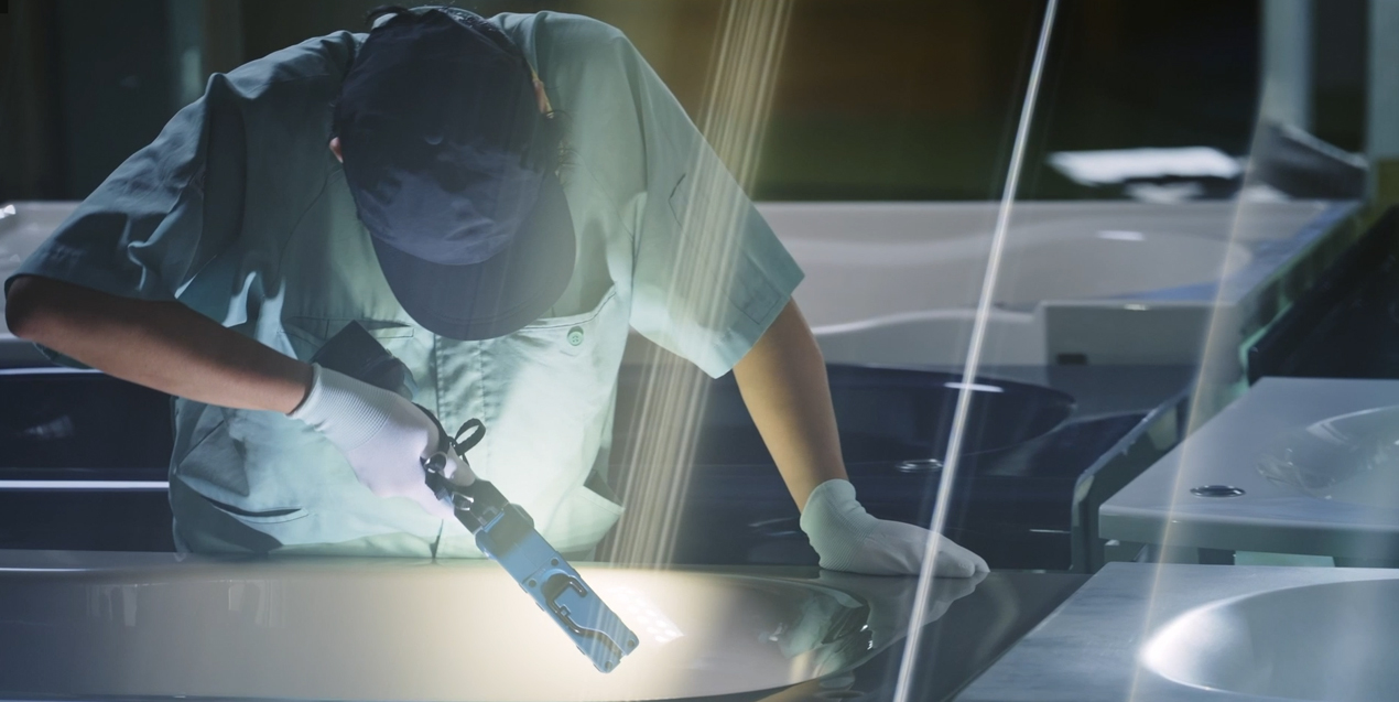 バスルームの中で、バスタブはくつろぎの中心でありながら、毎日熱水にさらされている、劣化しやすい場所。だからこそトクラスは、素材から開発をおこない、独自の厳しい規格を設けることで高い品質を保ち続けています。