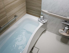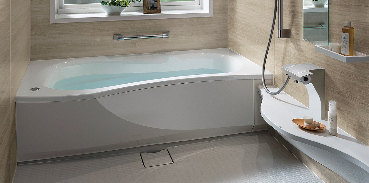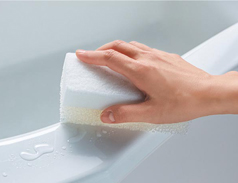 独自素材のバスタブは、表面がなめらかで汚れがつきにくく、落としやすいのでお掃除もラクラク。軽くサッと拭くだけできれいが長持ちします。また長く使っても劣化しにくいので20年先もなめらかなまま保てます。