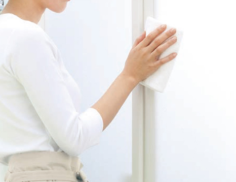 体を洗う、シャワーを使うなどの動作で、鏡やドアには意外と汚れがハネがち。範囲が広くて手入れが大変な、鏡やドアにもお手入れ簡単の工夫があります。