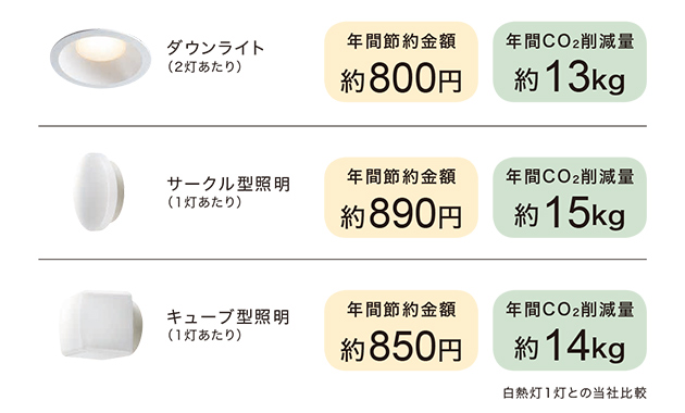 浴室内の照明を白熱灯からLEDに変えることで、電気代が節約できます。節約によってCO2の排出量も減らすことができ環境負荷も低減できます。