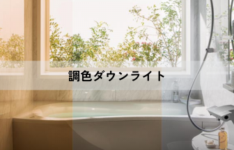 生活シーンや気分に合わせて光の色が選べる「調色ダウンライト」。 落ち着いた光の色や爽やかな光の色など、入浴時間やその時の気分に合わせて光の色を選ぶことができます。 追加オプションの調光器付きなら、明るさを自由にコントロールできます。