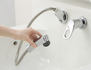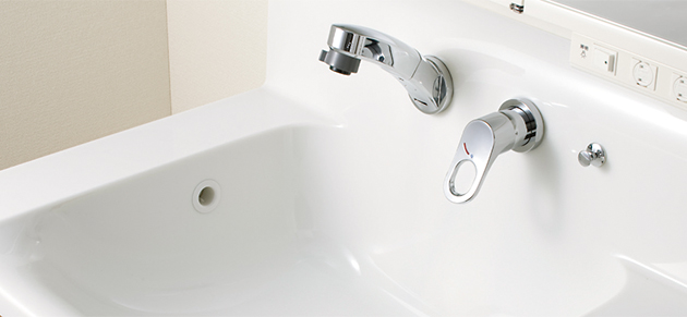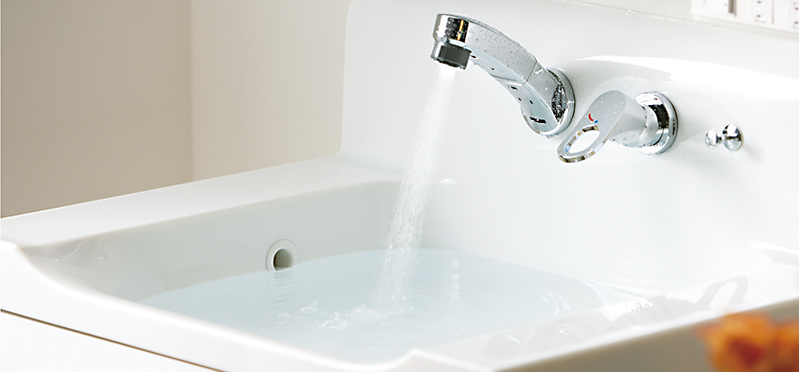 水栓の根元は、水も汚れもたまりにくく、衛生的でお掃除もラクラクです。
