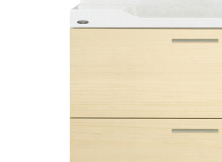 人造大理石のボウルは、バックガードまでなめらかな曲線でつながる継ぎ目のない一体成形。カビやヌメリの原因となる汚れがたまりにくく、毎日のお手入れが簡単です。壁側が立ち上がったハイバックガードで水はねもサッと一拭きできれいに。