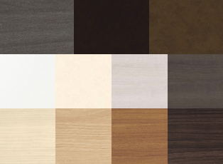ツヤを抑えたマット仕上げの扉カラー。8色のカラーと4種の木目調からお選びいただけます。
