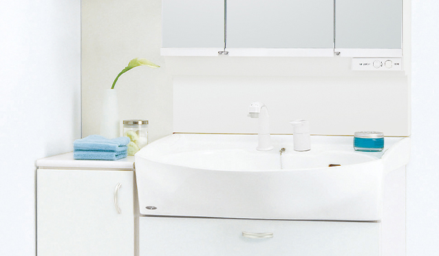 大容量の陶器ボウルに機能で選べるキャビネットやミラー。クリーンなデザインとお求めやすさが魅力です。