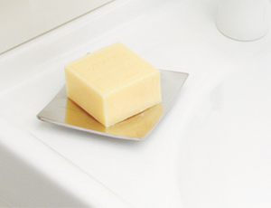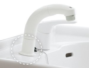 水滴が残りにくい水栓の取り付け位置を周囲より低くして、水が流れるスロープを設けました。