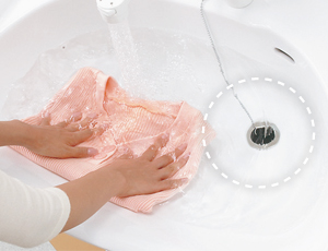 かんたん排水口を右奥に配しているので、洗濯時にも排水口が邪魔になりません。