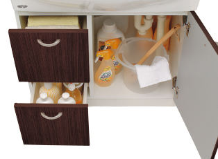 引出しと開き扉の組合せで効率よく収納できるタイプです。