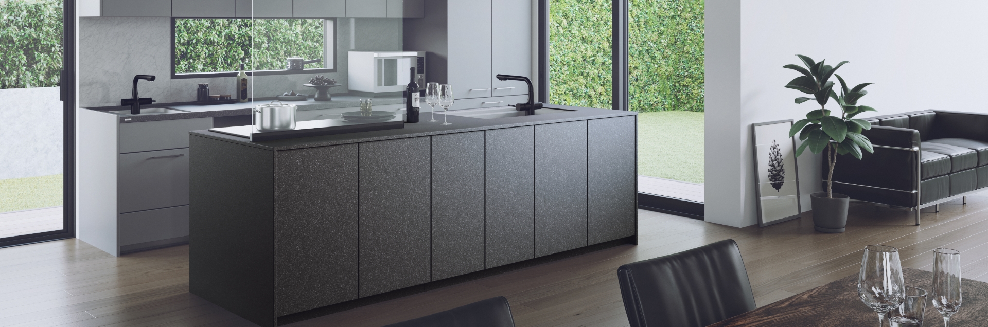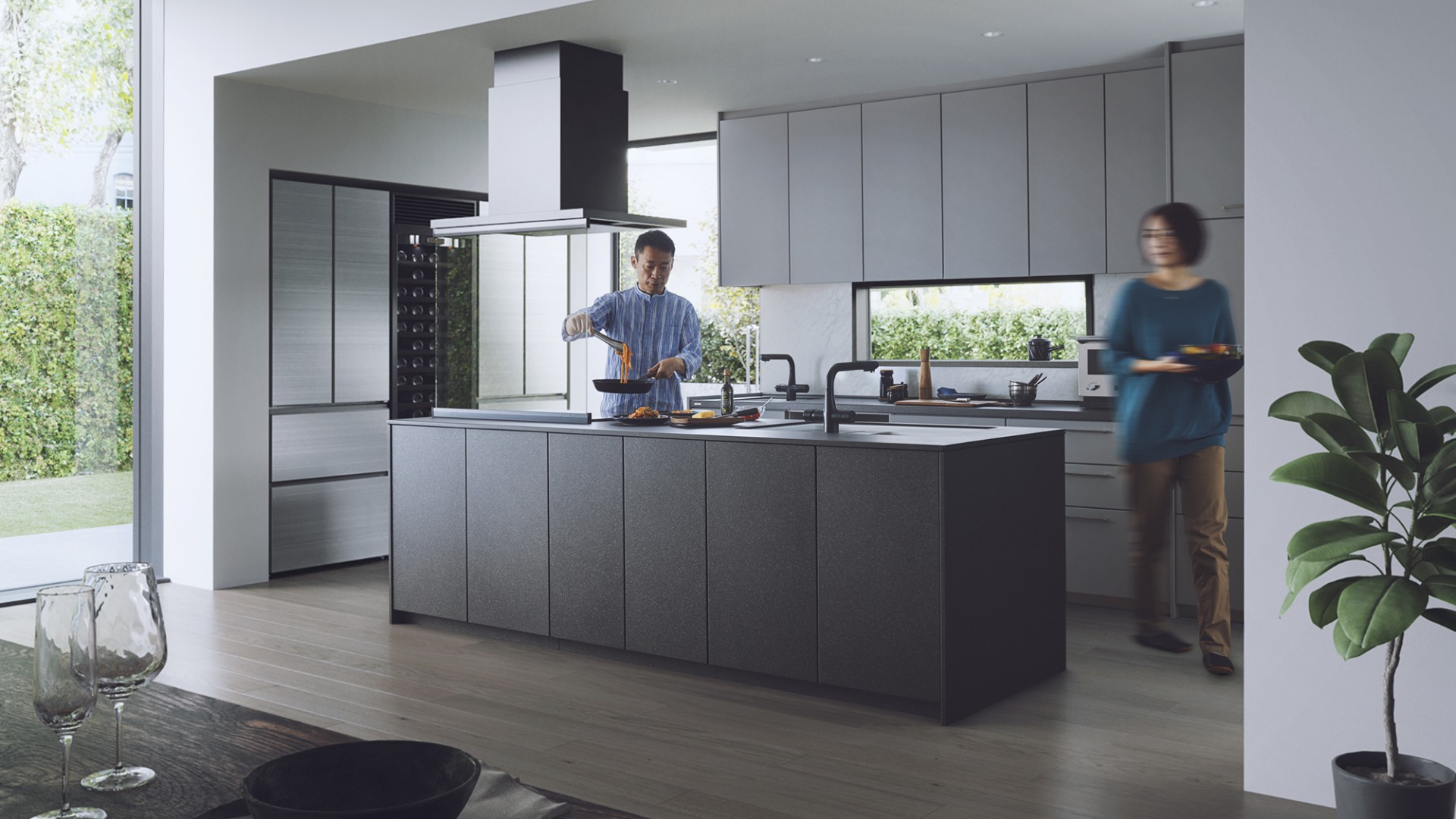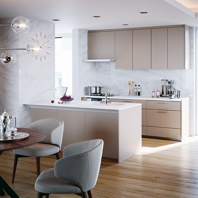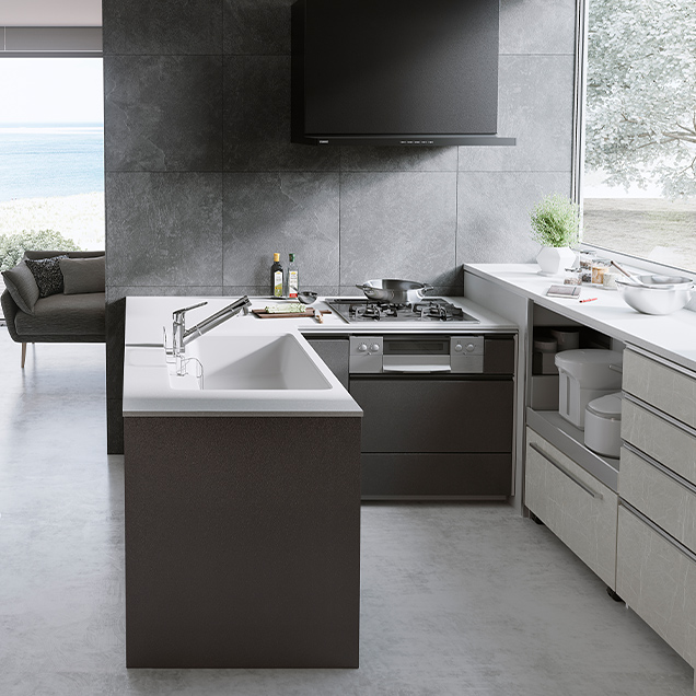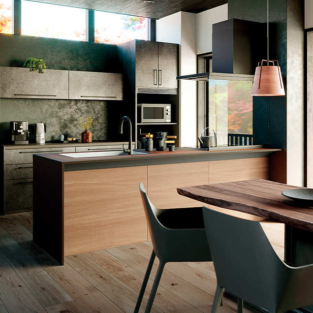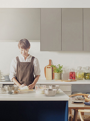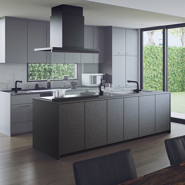 両側から調理エリアにアプローチできるアイランドキッチンだから、互いの動きや考えが自然に伝わって、緩やかな連携が生まれます。