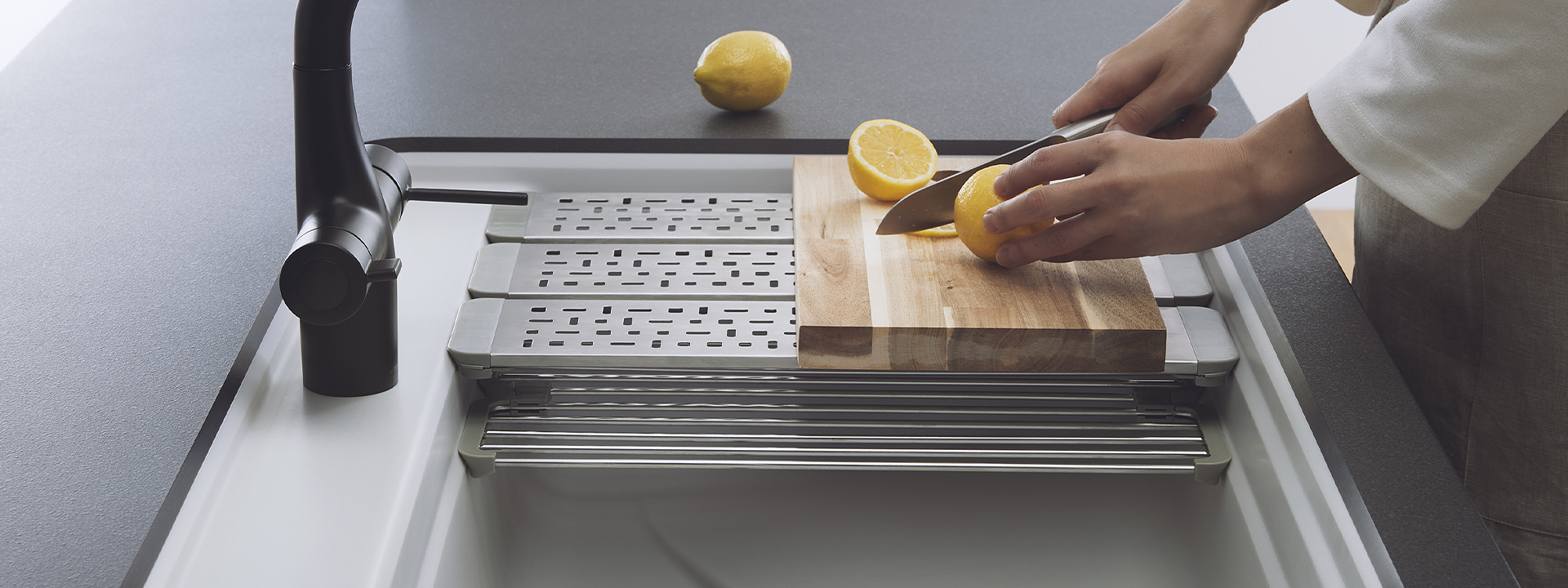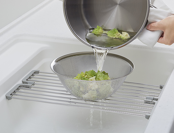 折りたたみ式のアイテムで、シンク上のスペースをマルチに活用。