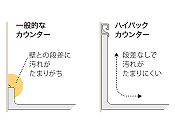 バックガードを高く立ち上げて、カウンター奥のお手入れを簡単に。
