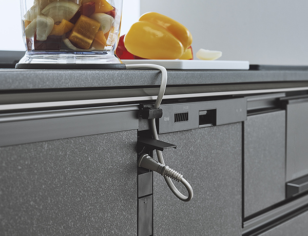 オプションで、クックコンセントを設置可能。調理家電に便利な2口コンセントで、未使用時はフラップを閉じて隠せます。