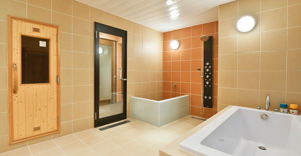 湿気がたまりやすくカビに悩まされていた1階は、元々は和室だったスペース。奥さまのアイデアで、居住空間ではなくサウナと水風呂を備えたスパスペースに改装しました。