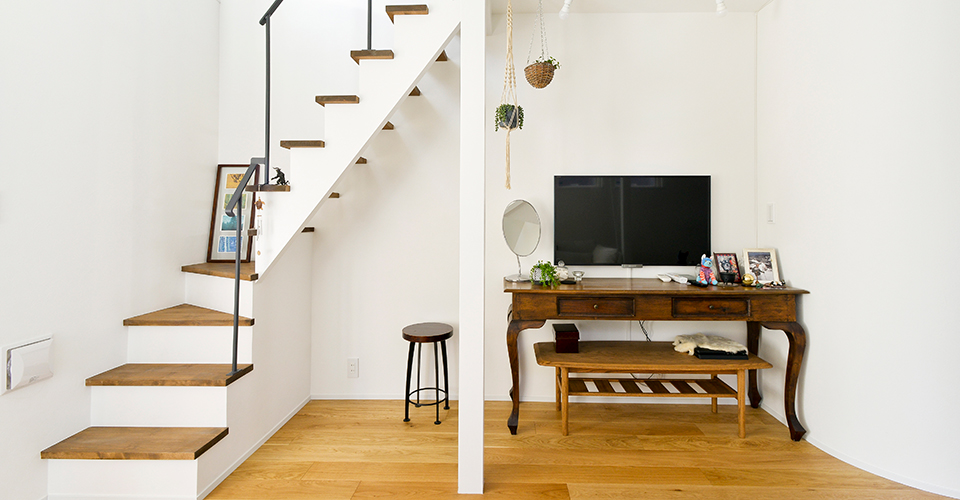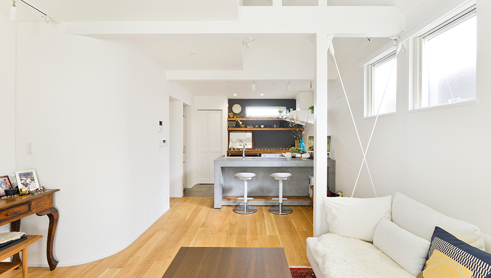 階段の位置を移動することによって、光をふんだんに取り込める開放的な間取りの住まいを実現しました。明るさだけではなく、「耐震性と寒さを改善したい」という要望に応え、躯体の構造に手を加えて強度を上げつつ、壁面の断熱性を高め窓は全て2重サッシにした点もポイントです。