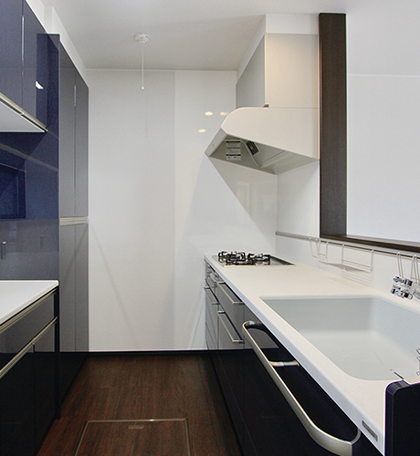 ●壁付だったキッチンを対面式とし、LDKにつなげることで開放的に感じられる空間としました。