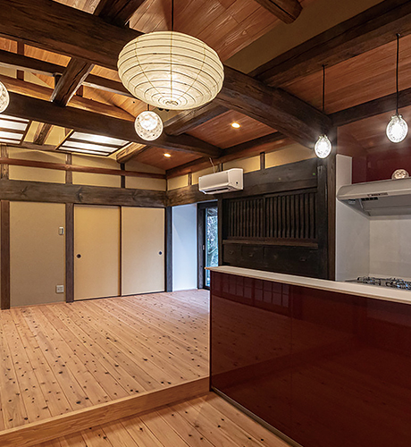 トクラス製品は、古材を生かしながら空間になじむ色・質感、古材に引けをとらない高級感があったので取り入れました。代々大切にしてきた家を開放的に蘇らせていただきました。自分たちはもちろん、お客様をお迎えすることも、前以上に楽しみになりました。