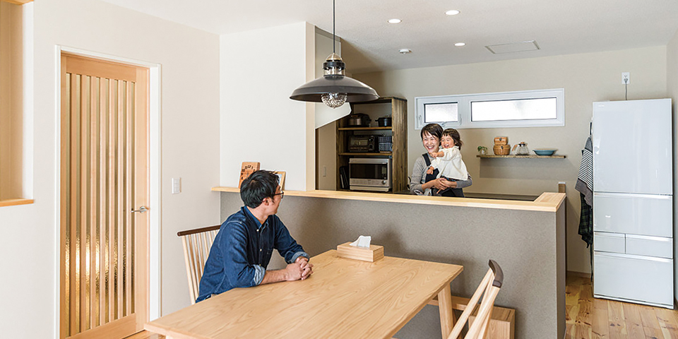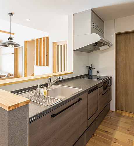 家事をしながら楽しく会話できる対面カウンターキッチン。