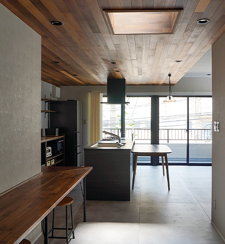 ●LDKにレッドシダーの天井を貼ることによって、木に包まれた伸びやかな空間を感じるように設計。