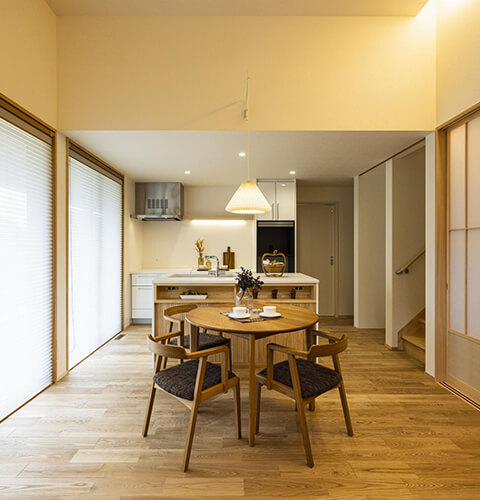 シンプルで居心地のいいLDKは障子戸など和のテイストをアクセントに取り入れて落ち着きのある空間に。