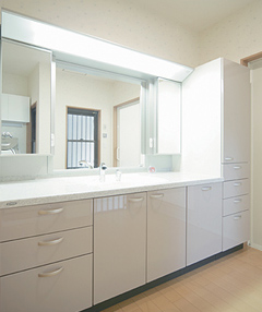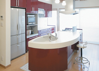 台所は壁側にあるべきだ、と思っていましたから、真ん中に置くのは抵抗感がありましたが収納、キッチン、収納と川の字にレイアウトすることで、結果的には収納スペースを多く取ることができ、また、3世代の家族が集まって料理をしても、動線に無理がないゆとりのキッチン空間ができて、満足しています。
