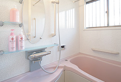 カウンターと一体になったシンクの隙間に汚れがたまらなくて清潔感があっていいですね。カウンターも広くて使いやすいです。また、以前のタイルの風呂では寒く、ヒートショックの心配もあって危ないと思っていたそうですが、ミスとを付けたことで、寒い冬でも安心して快適なバスタイムを楽しめるようになりました。