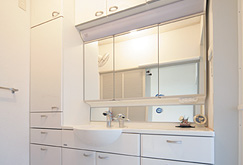 「左右も天地もわが家の洗面室の空間にピッタリ納まる製品が、Yamahaにあったんです。鏡も大きくて三面鏡にできて使いやすいだけでなく、裏が収納スペースになっているので有効に使えます」と奥様。さらに快適で暮らしやすくなった空間で、おふたりの生活を楽しんでいらっしゃいます。