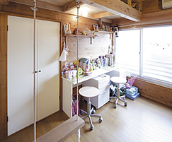明るい陽射しが降り注ぎ、ロフトのある子供部屋は、ふたりのお子さんのご自慢の部屋