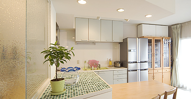 システムキッチンの使い勝手が良く、収納スペースも広いので、とても満足しています。家事をしていても、いつも家族の姿が見え、声が聞こえるので安心できるし、嬉しく思います。また、空間の有効活用や、採光の工夫などいろんなアイデアを提案していただいたお陰で、のびのびと明るい家族の住まいにリフォームできました。