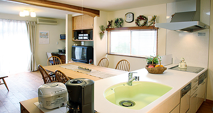 「初めて見た時は、何よりシンクに色があるということに驚きました。特にこの明るいグリーンがお気に入りです。お茶を飲みに来た友達が羨ましがって『どこの製品?』と訊くので、つい自慢してしまうんです」と、嬉しそうなご様子。さらに、火を使わないIHクッキングヒーターは、以前から歳をとったらぜひ導入したいと思われていたもので、「お掃除がラクな上、安心して使えますね」と使い勝手の良さにも納得されていました。