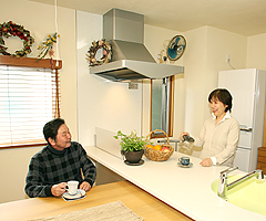 対面式のオープンキッチンなので、テーブルについたご主人とも会話を楽しみながらキッチンに立つことができる