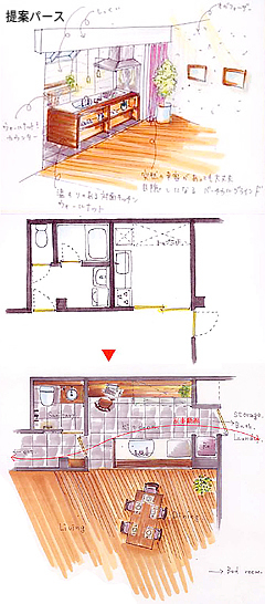 「デザインにこだわりのあるお客様ほど、ヤマハのシステムキッチンを選ばれます」と話すのは、プランニングを担当したリフォームのケンテック社長の山本さん。「私たちはそこから一歩進み、人気のキッチンを活かしながらリフォームのケンテックならではの個性を出せればとひと工夫を施しました。既存のものを用いても、アレンジ次第で可能性は広がります。キッチンに醸し出すことがむずかしいと考えられている自然素材の雰囲気あふれる空間だって、諦めることはないのです」