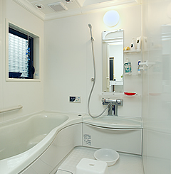 システムバスは、明るく使い勝手が良いと坂田さん。浴槽のやわらかい曲線のデザインも採用の決め手に