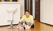 坂田愛子さんとシーズー犬「あられ」「もも」「ねね」