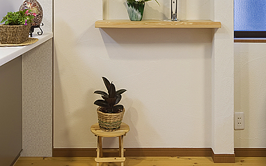 自然素材を用いた家づくりを得意とする木楽は、板垣邸にも無垢の木材をふんだんに使用しています。当初はピンとこなかったというご夫妻ですが、「10年後、20年後にはもっと魅力が増して、すてきな家になりますよ」という川井さんの言葉を受けて、木楽にすべてを任せたといいます。定期的に剥がして貼り替える必要のあるビニールクロスは一切排除。同じく、傷ついたら貼り替えなければならないカラーフロアも使いませんでした。壁に用いたのは珪藻土で、床のフローリングは無垢のパイン材。時間が経てば経つほど、味わい深く変化していきます。「金額的には多少高くなりましたが、お任せして良かったと思っています。自然素材のおかげで、室内の空気が澄んでいるような気がしますね。床の肌触りが気持ちよくて、家の中ではいつも裸足ですよ。将来的なことまで視野に入れて提案してくださった川井さんに感謝しています」。