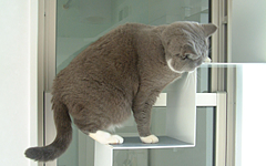 キャットウォークの階段は、薄さを強調した美しいデザインに。猫のツメを考えてステップや壁には傷つきにくい素材を採用