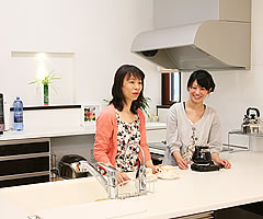 3〜4人がキッチンに入っても余裕のスペース。お友達を呼んで食事会を開いた時も、お友達同士でお話しながらお食事を楽しんだそう