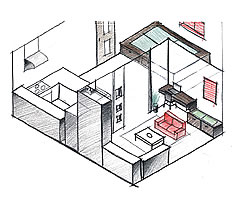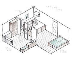 渡邉さんが最初に近藤さんご夫婦にご提案した時のスケッチ。近藤さんご夫婦も、渡邉さんがレイアウトしたリフォーム空間を気に入ったのだとか