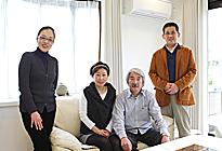 | Tさんご夫妻を囲み、 造研の和田宅矛さん(右)と高部昌代さん(左) |