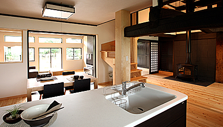 そんな高木さんとオノヤさんが二人三脚で完成させたのは、“古民家と新和風スタイルが融合した家”。昔ながらの広い玄関とすぐ傍の部屋は、古民家の趣き。雰囲気の良い既存の梁や柱をそのまま活かし、高い天井は薪ストーブで寒さ対策。古き良きあたたかみのある空間が出来上がりました。