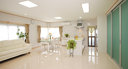 奥様が1階で美容院を経営されている辻井さんご一家。既にお嫁に行かれた2人の娘さんも、一緒に美容院で働いています。娘さんが働いている間はお孫さんが来られ、LDKは休憩室にも保育室にもなります。