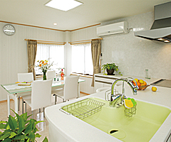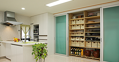 新和風建築 サワさんは、そんな奥様の憧れを形にするため、何度も打ち合わせを重ね、プラン図を何回も作成しました。辻井さんご家族にとっての使いやすさを追求し、さまざまな工夫を凝らしました。使いやすく美しいキッチンにするために、元の仕様にはない“逆L字型”カウンターをご提案。それにより食事をしながら物を置いたりすることができ、収納が多く、動線のスムーズなカウンターができました。「これは現場施工での対応でした。ヤマハのキッチンは現場毎に加工することができ、お客様のご要望に合わせられるのも魅力ですね。」と、新和風建築 サワさん。「打合せをたくさん行ない、プラン図も何回も提出してくれました。トラブルにもすぐ対応してくれましたし、頼もしかったですね。」と新和風建築 サワさんへ厚い信頼を寄せる辻井さん。