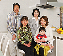 | 辻井さんの2人の娘さんとお孫さん(前列) 新和風建築サワの千葉ご夫妻(後列) |