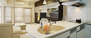 お仕事が忙しくお休みも少ないSさんにとって、家族と過ごす時間はとても大切なもの。明るいキッチンになってからは、自然と家族が集まり、会話も弾むようになりました。「キッチンでばたばたしていると息子が手伝ってくれるんですよ。娘も、もう嫁に出さないといけないのに『居心地が良い』なんて(笑)。」リフォームで、暮らしも気分も一新したSさんご一家。快適にくつろげる明るい空間に、仲の良い家族の笑い声が響きます。
