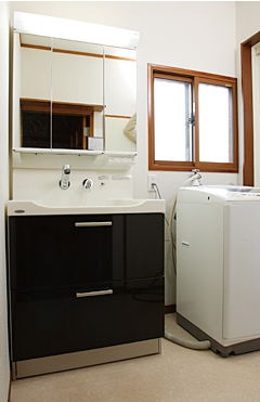 一方、お風呂は「Beaut Libero」を採用。お掃除のしやすさはもとより、気密性が高く、冬でもポカポカとあたたかいのが魅力です。バスタブや洗い場も広々と快適に生まれ変わり、手足を伸ばしてのんびりリラックスできるようになりました。カラオケが趣味のご主人は「サウンドシャワーは最高ですよ。オノヤリフォーム倶楽部さんにお願いして、洗面室に扉付きのCD置き場を作ってもらったんです。毎日、お湯につかりながら喉を鳴らせば上達間違いなしですね」と顔をほころばせます。